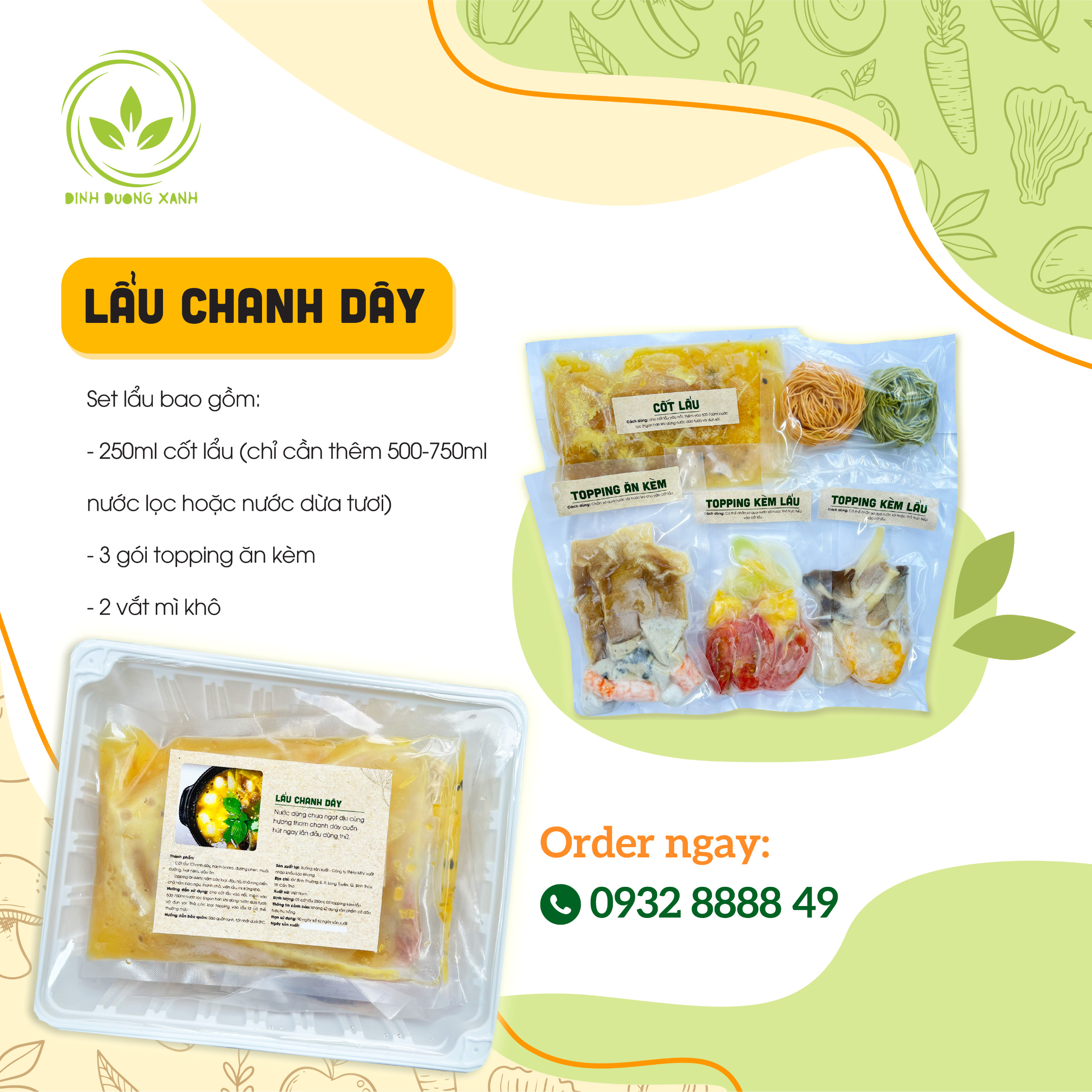 Định lượng: Cốt lẩu 250ml, topping kèm lẩu 300g